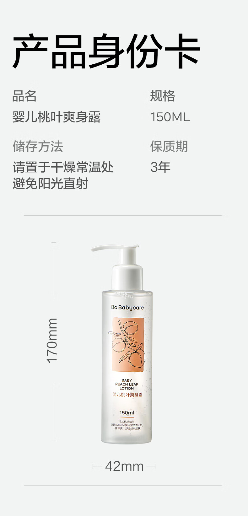 商品标题:babycareBC2009034婴儿桃叶爽身露150ml(瓶)