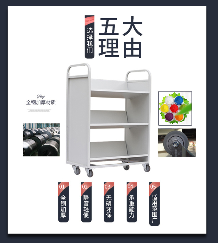 商品标题:圣斯顿SD-SH3V书车图书馆资料室小推车800*360*1100mm(台)白色