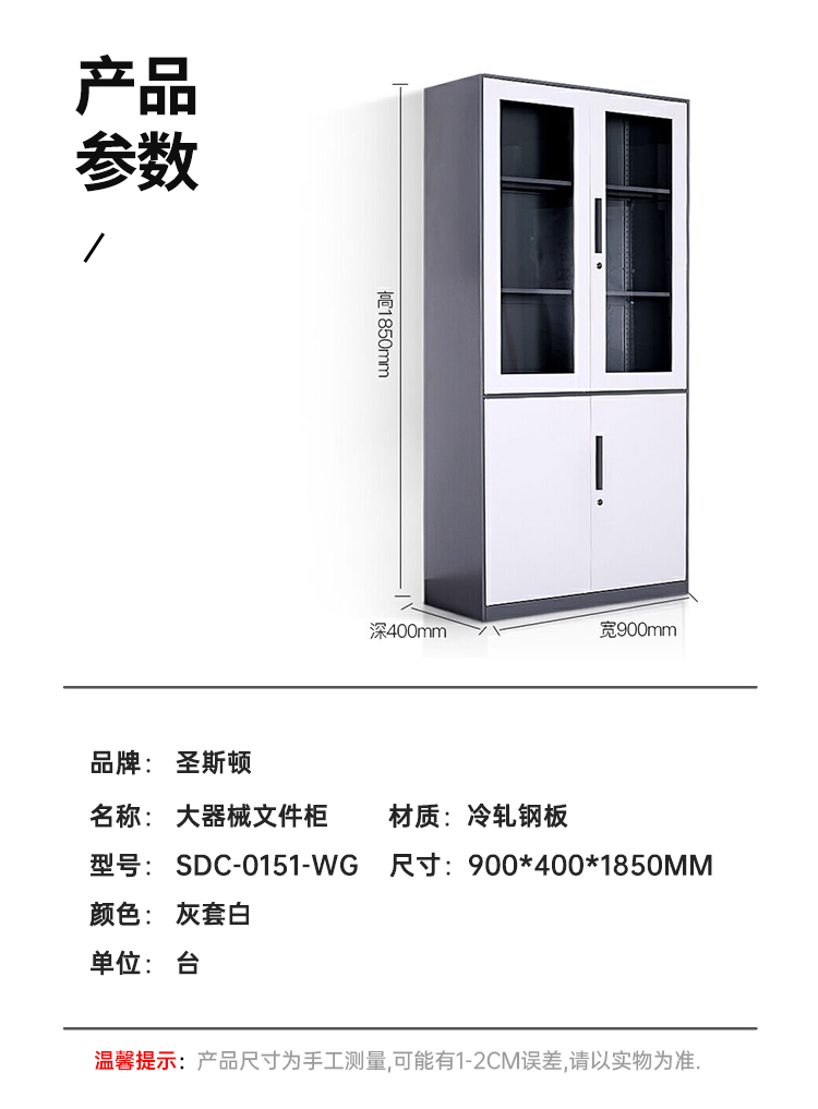 商品标题:圣斯顿SDC-0151-WG大器械文件柜1850*900*400mm(台)灰套白
