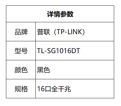 品牌:普联(TP-LINK) 型号:TL-SG1016DT 商品标题:TP-LINK TL-SG1016DT 交换机 16口全千兆 (台) 黑色 销售单位:个