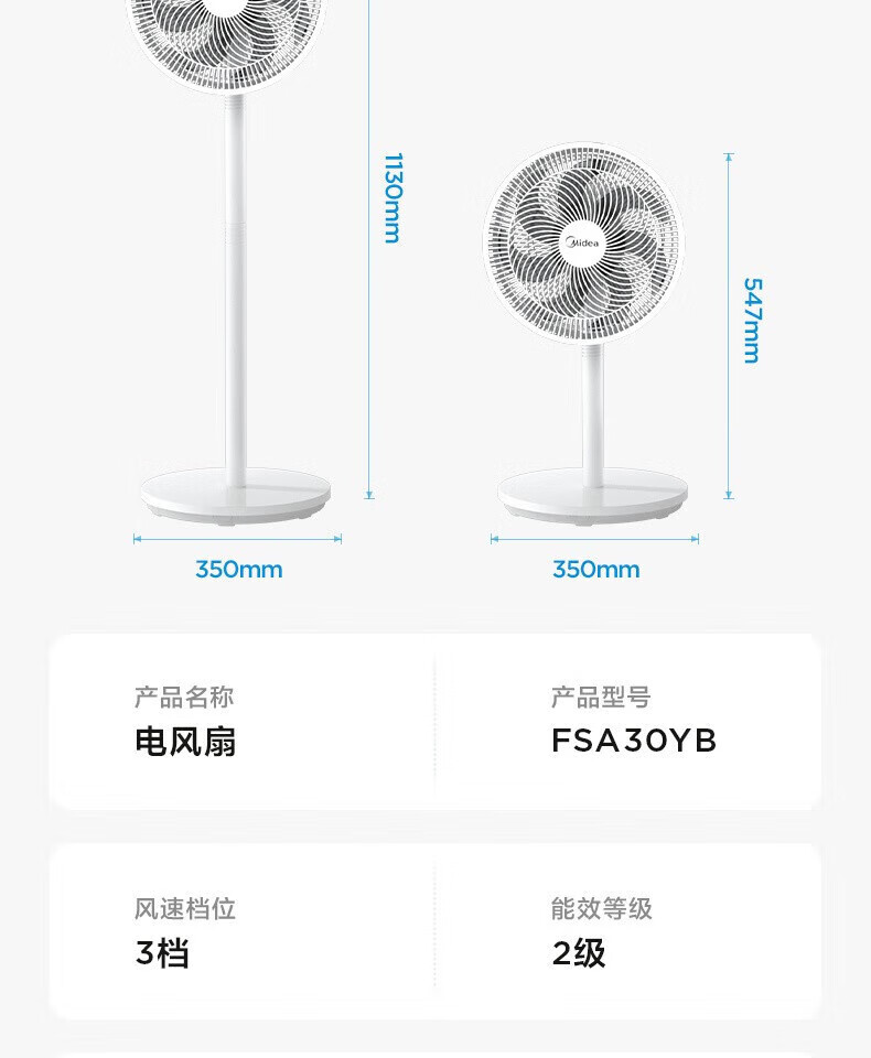商品标题:美的(Midea)FSA30YB七叶电风扇(单位:台)