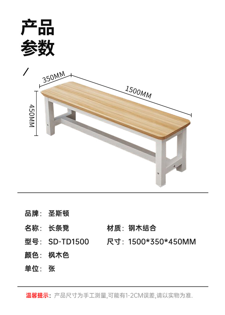商品标题:圣斯顿SD-TD1500长条凳板凳1500*350*450mm(张)多色可选