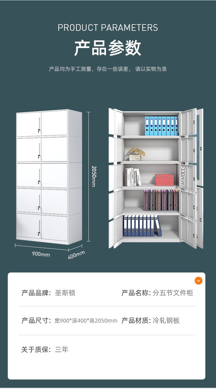 圣斯顿LP-0129-WT白色分五节档案柜文件柜2050*900*400mm(台)白色