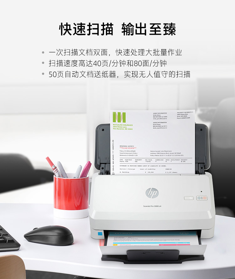 商品标题:惠普(HP) 3000 s4 馈纸式扫描仪A4(台)