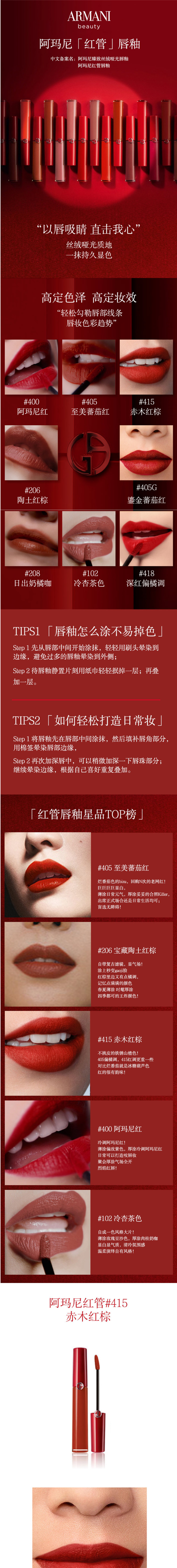 阿玛尼 红管唇釉 415#赤木红棕色6.5ml(单位:支)