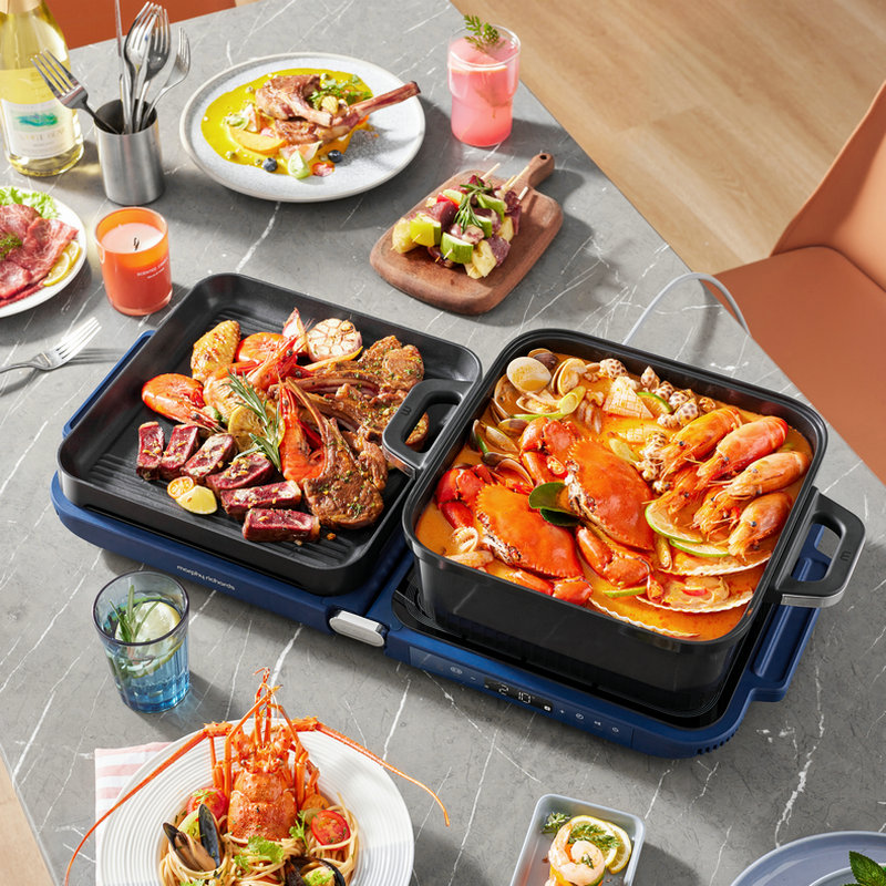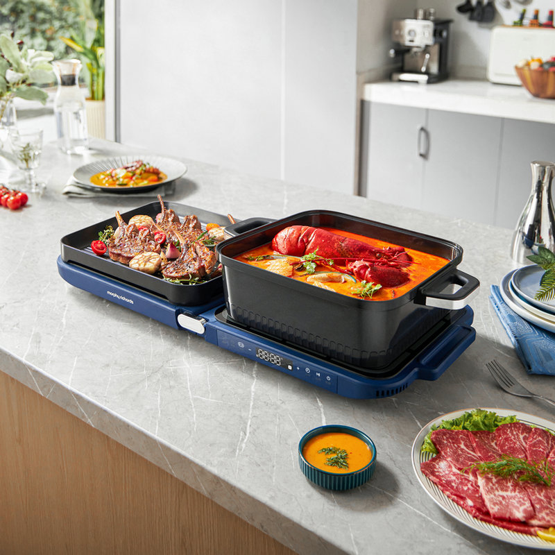 摩飞电器(Morphyrichards)折叠多功能锅 家用聚会嗨吃烤涮一体不沾煎烤料理锅【标配】MR9188蓝