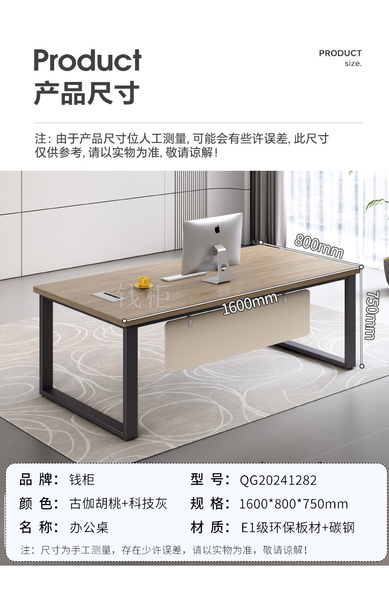商品标题:钱柜QG100161842936主管经理办公桌书桌简约现代轻奢老板桌160*80*75cm不含柜(个)
