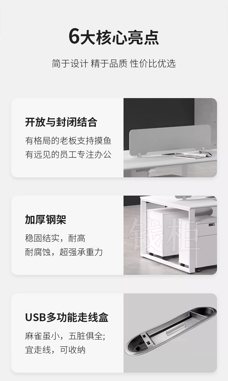 商品标题:钱柜QG100131657073简约现代职员办公桌电脑桌单人位阳光白密码锁120*60*75cm(个)