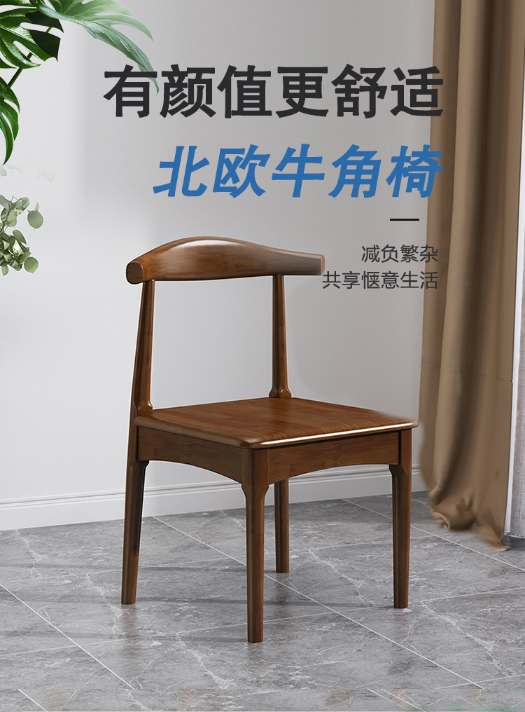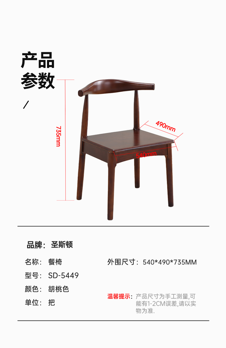 商品标题:圣斯顿SD-5449实木餐椅牛角椅吧椅540*490*735mm(单位:把)胡桃色