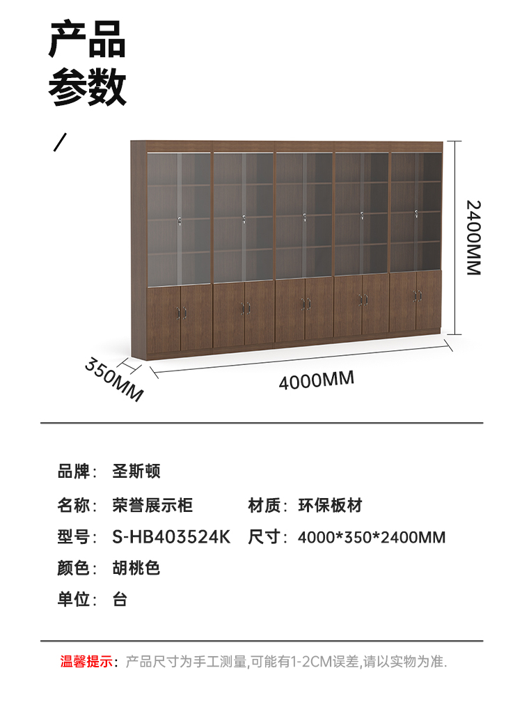 商品标题:圣斯顿S-HB403524K荣誉柜展示柜4000*350*2400mm(组)胡桃色