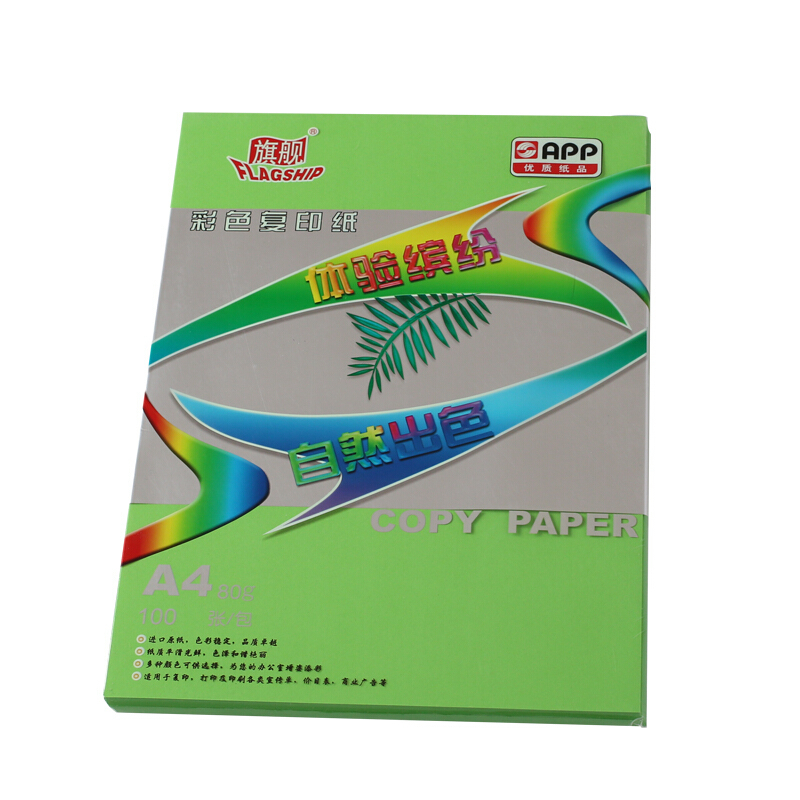 产品名称:旗舰A4/80G彩色复印纸翠绿色100张/包(包)