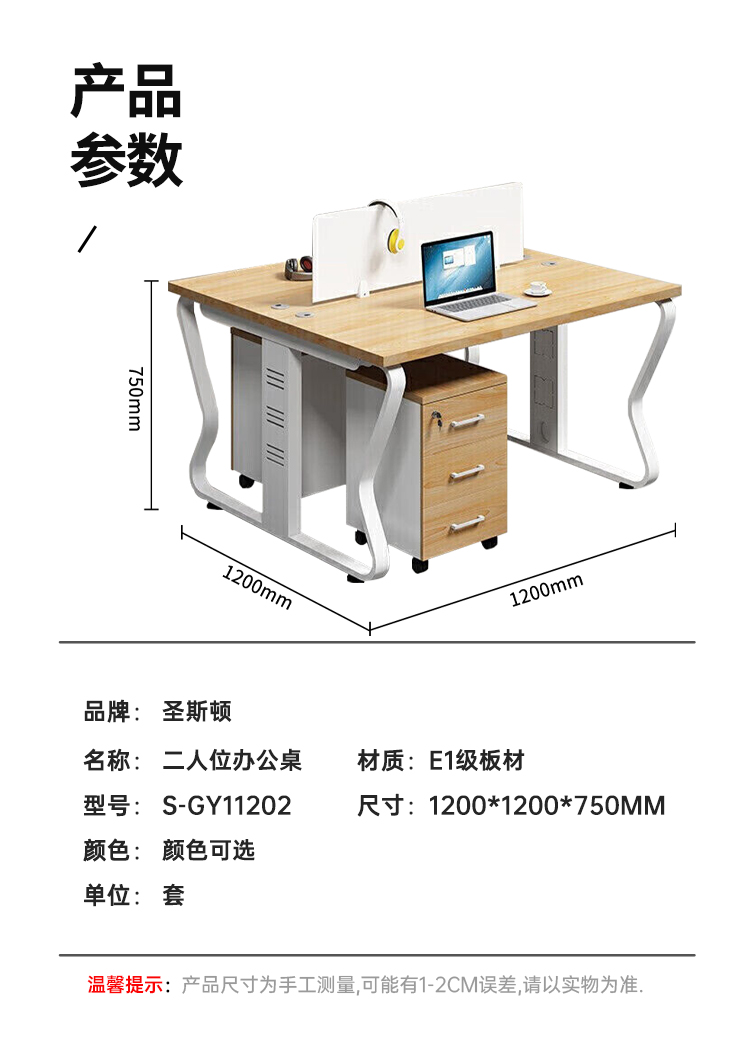 商品标题:圣斯顿S-GY11202二人位职员办公桌(含柜椅)1200*1200*750mm