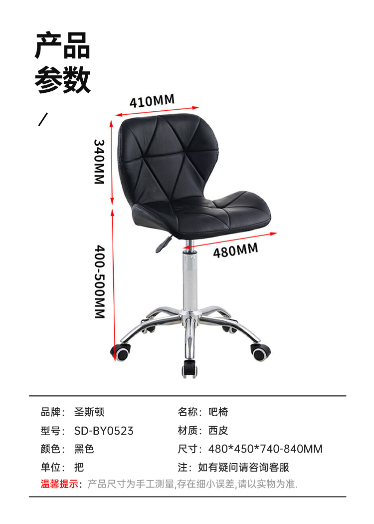 商品标题:圣斯顿SD-BY0523皮质吧椅转椅480*450*740-840mm(把)黑色