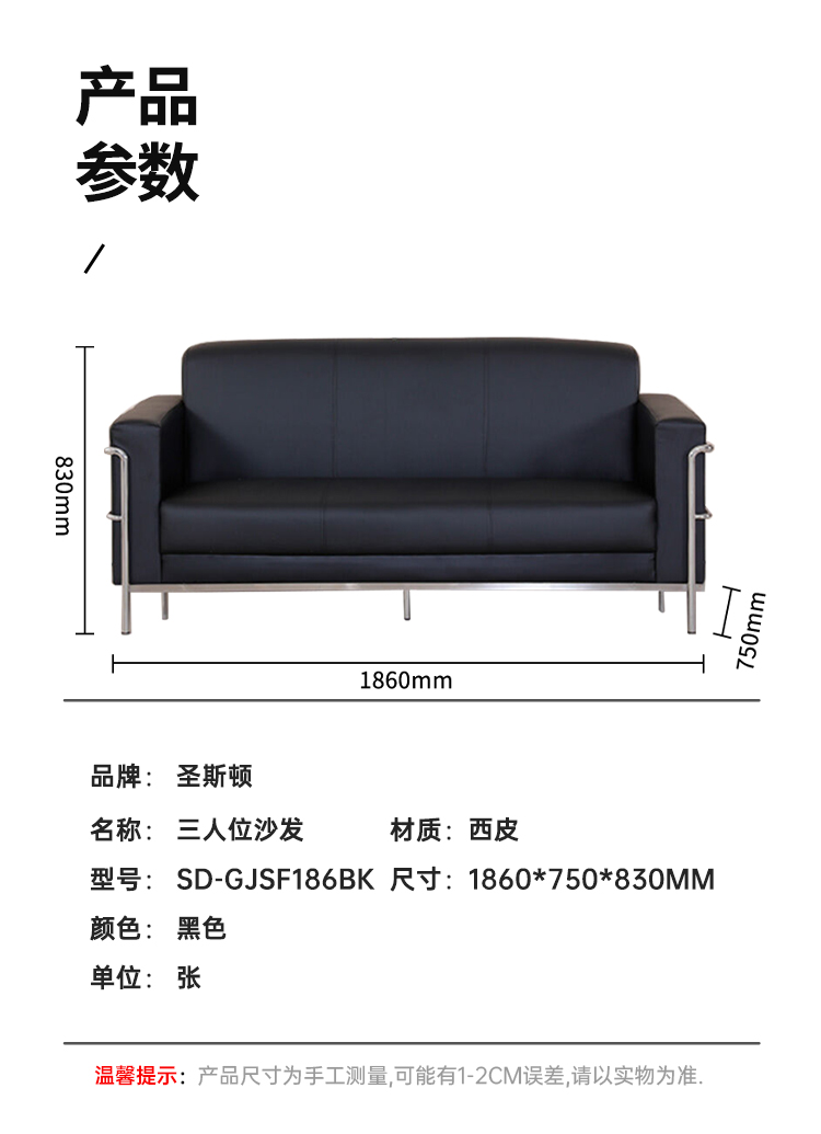 商品标题:圣斯顿SD-GJSF186BK三人位沙发1860*750*830mm(张)黑色