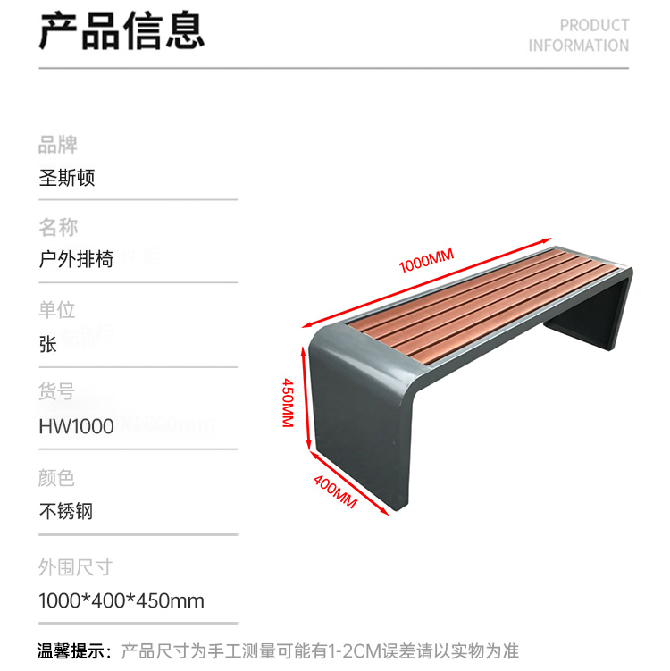 商品标题:圣斯顿HW1000户外排椅1000*400*450mm(张)不锈钢