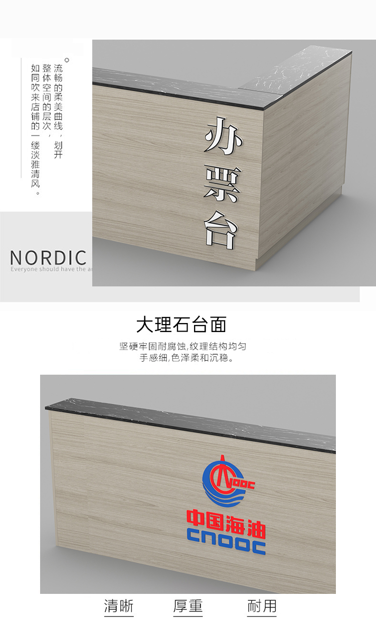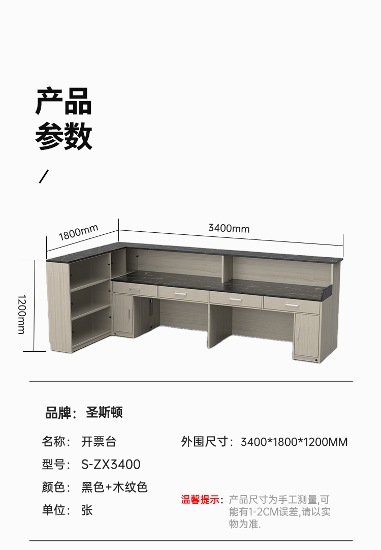商品标题:圣斯顿S-ZX3400大理石台面开票台3400*1800*1200mm(张)黑+木纹