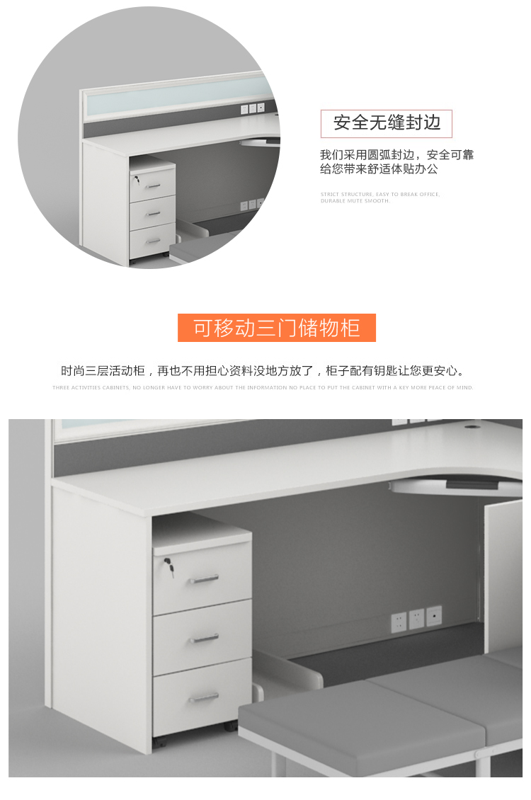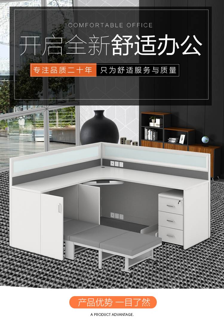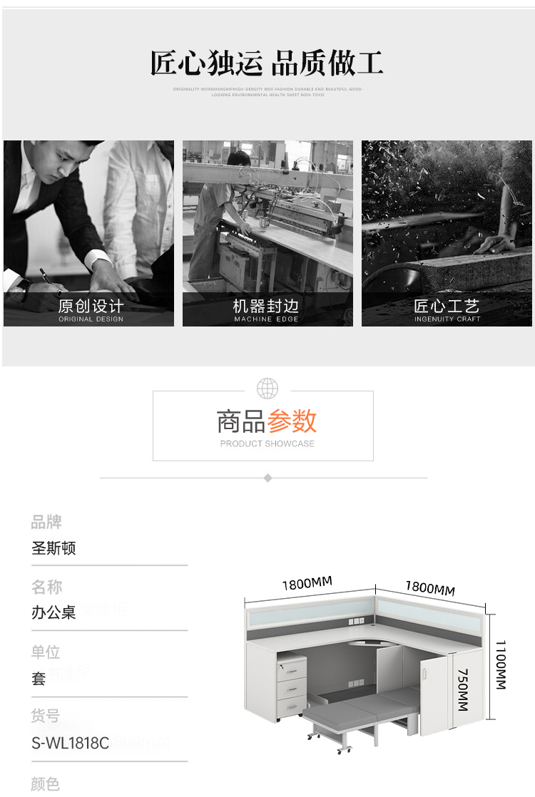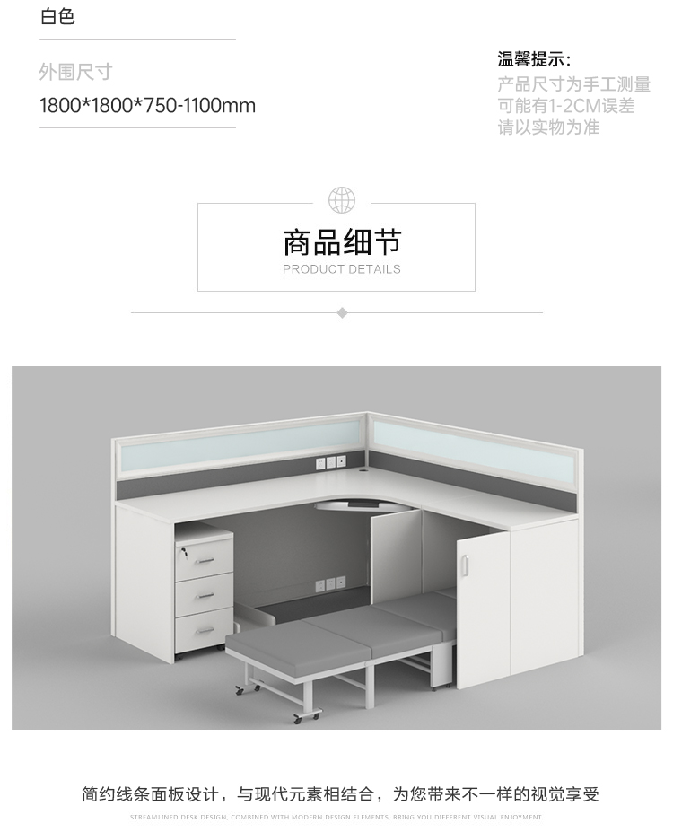 商品标题:圣斯顿S-WL1818C板式职员桌办公位含折叠床活动柜1800*1800*1100mm(单位:套)白色