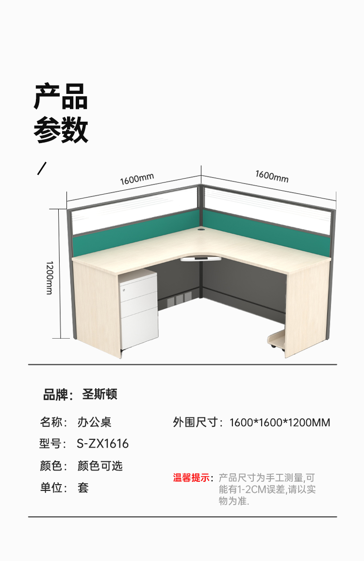 商品标题:圣斯顿S-ZX1616定制屏风卡座办公桌含键盘架主机托不含活动柜1600*1600*1200mm(套)颜色可选