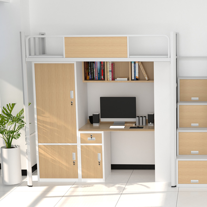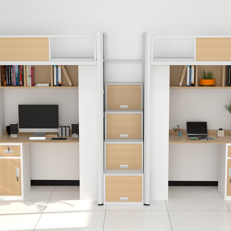 圣斯顿S-LF280012-2钢木结合款公寓床一梯二床4500x1800x1200mm(套)白色+木纹
