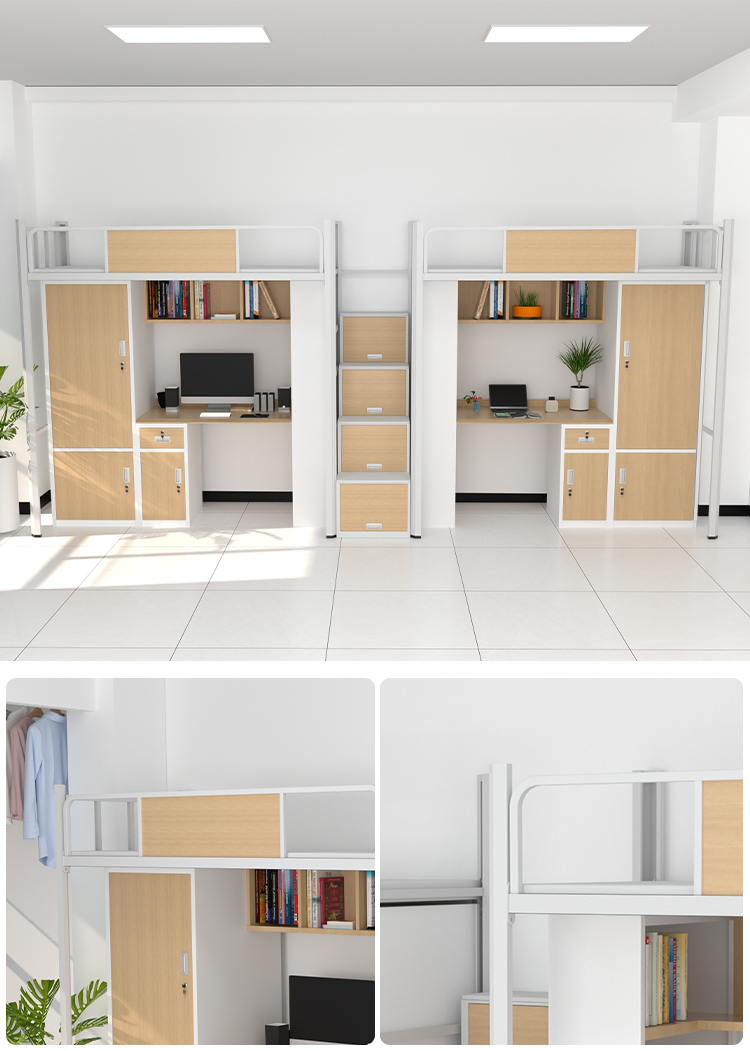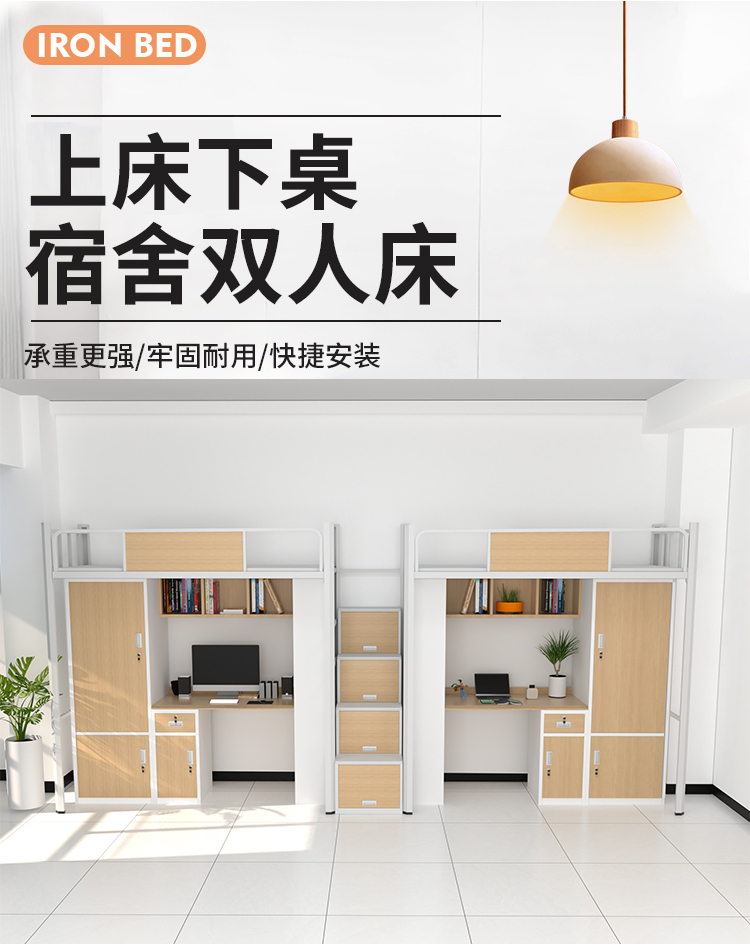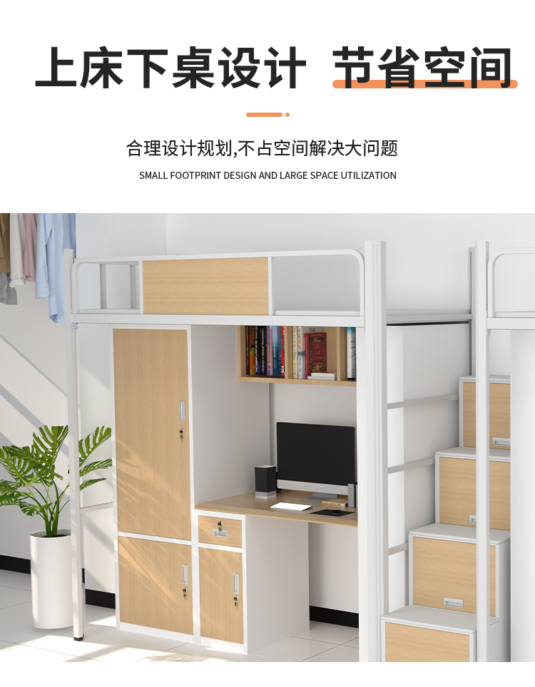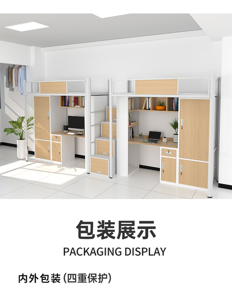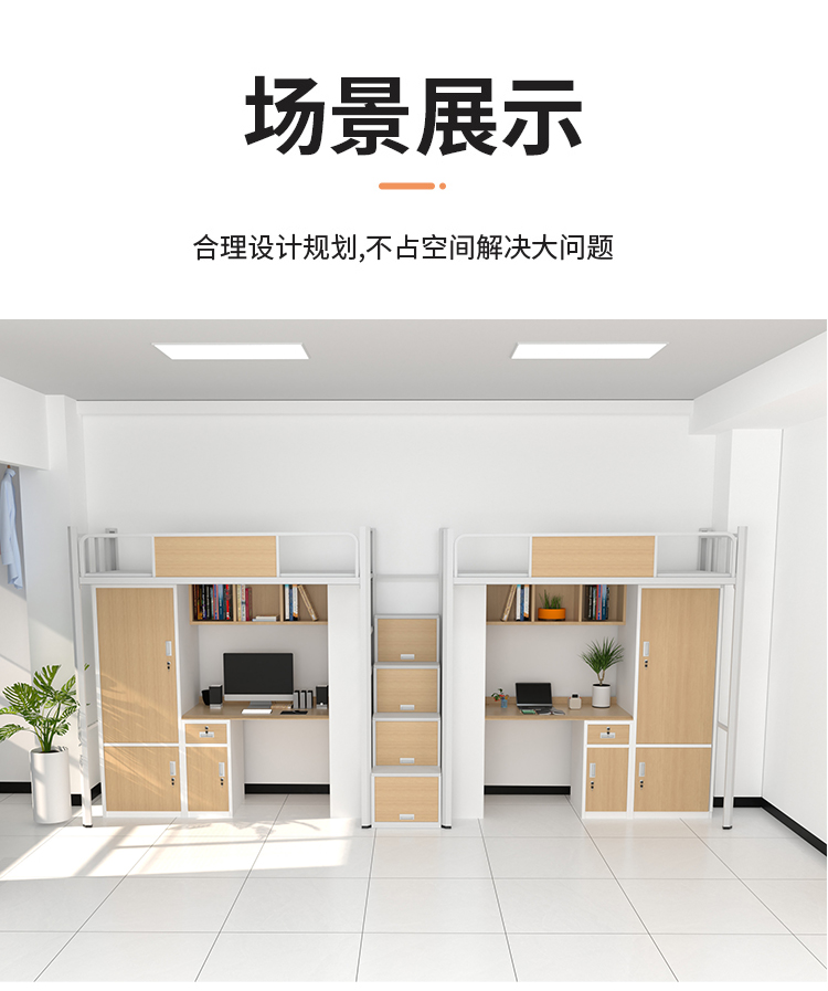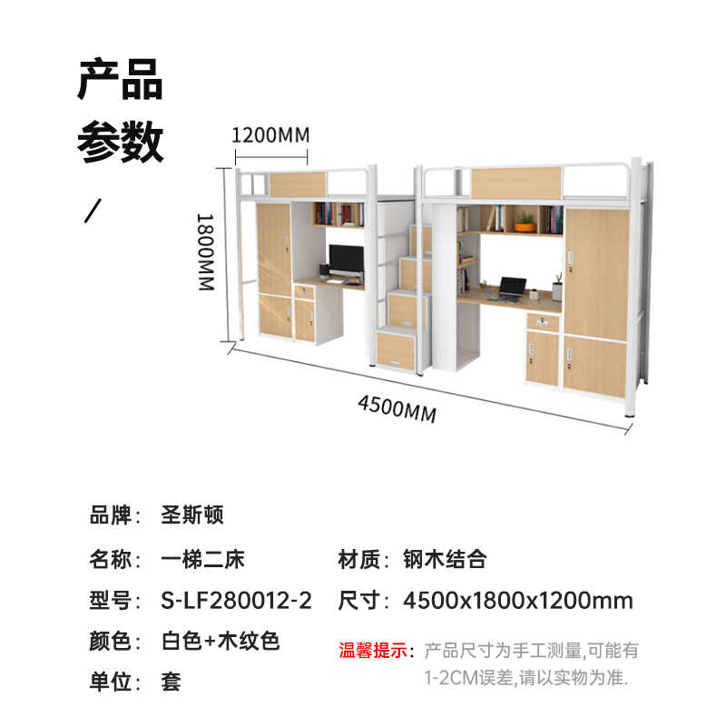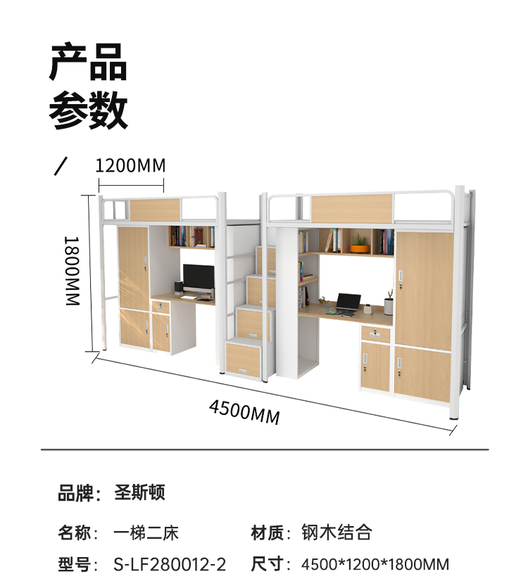 商品标题:圣斯顿S-LF280012-2钢木结合款公寓床一梯二床4500x1800x1200mm(套)白色+木纹