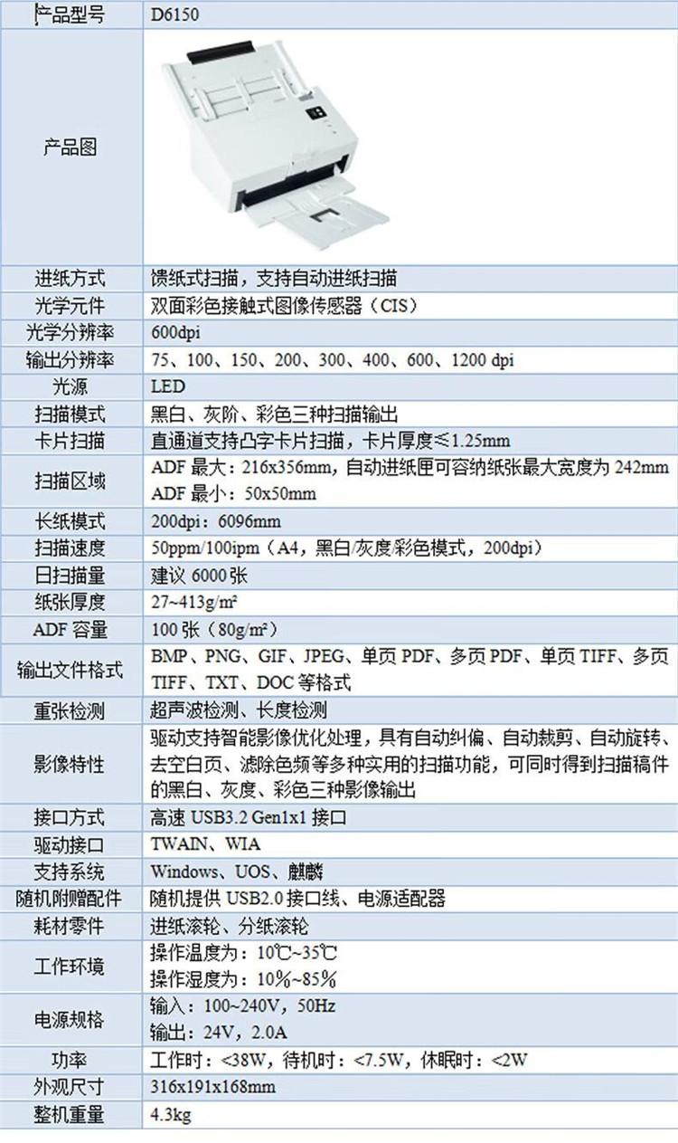 商品标题:方正(founder)D6150扫描仪50页A4高速彩色自动双面馈纸扫描仪支持国产系统(台)