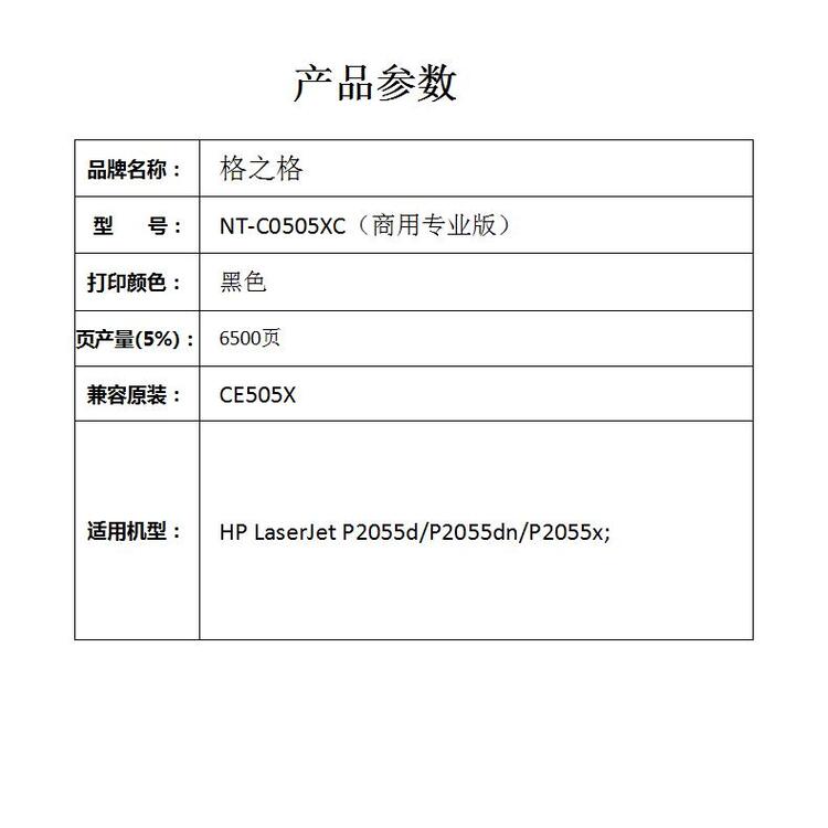 格之格NT-C0505XC(商用专业版)兼容CE505X硒鼓(鼓粉一体)黑色单支装(适用HP LaserJet Pro P1560/P1566/P1606/P1606dn/M1536dnf MFP; Canon LASERSHOT LBP6200/6200d;i-SENSYS LBP6200d)打印页数:6500页(单位:个)
