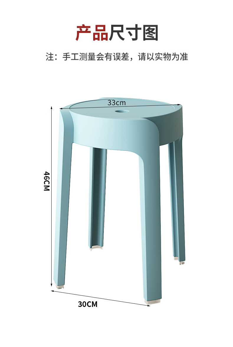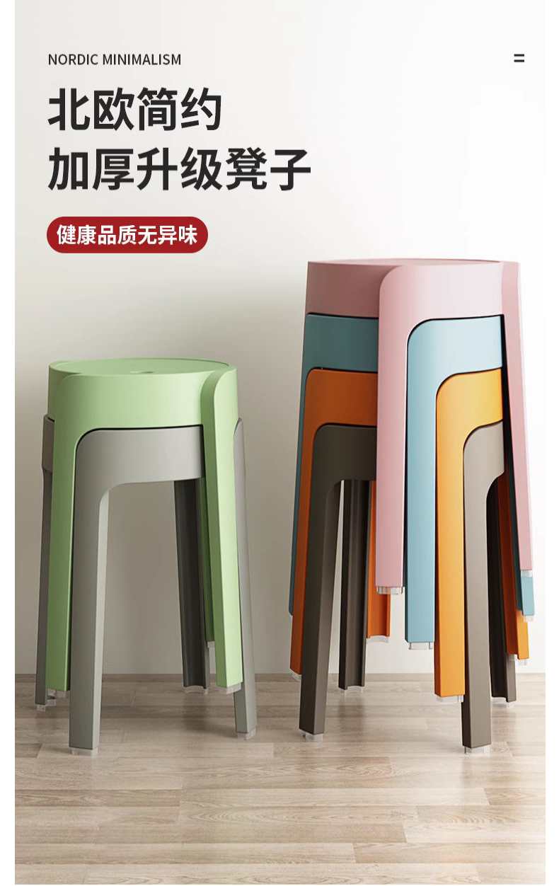 商品标题:钱柜QG202403270时尚圆凳塑料加厚可叠放高凳4张起拍(个)