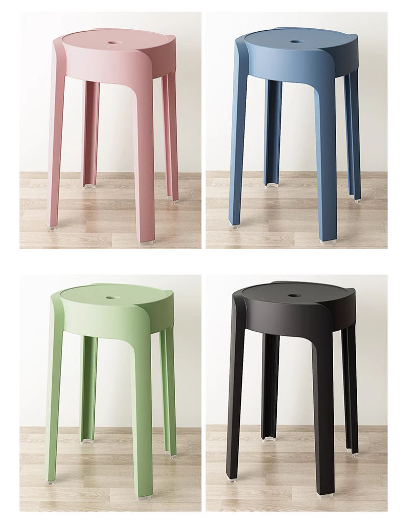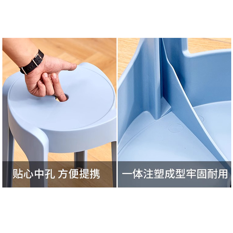 钱柜QG202403270时尚圆凳塑料加厚可叠放高凳4张起拍(个)