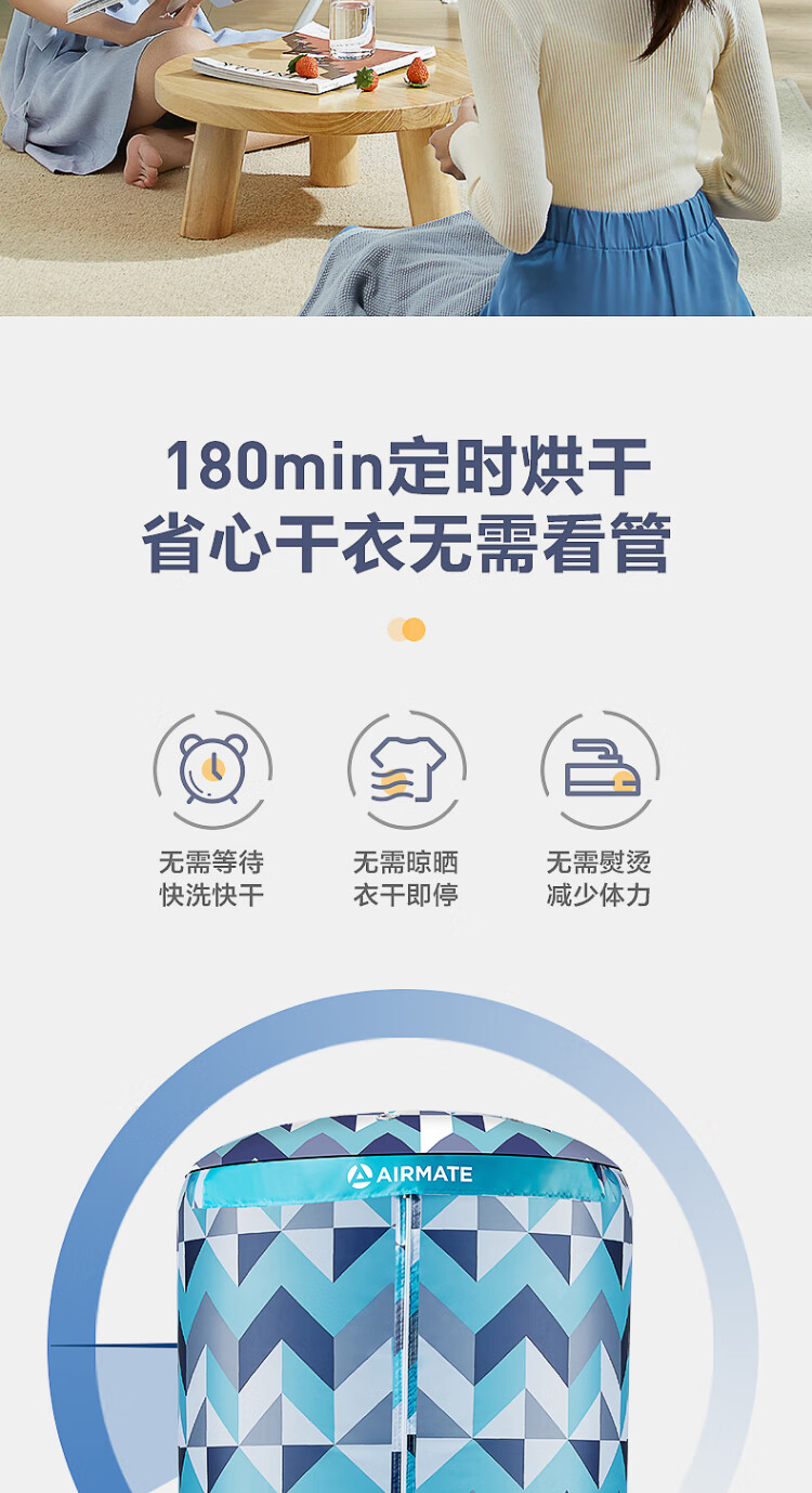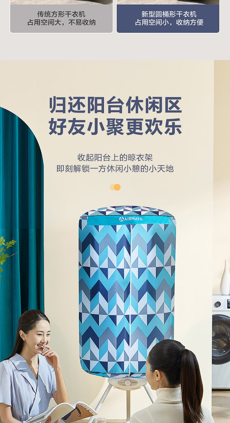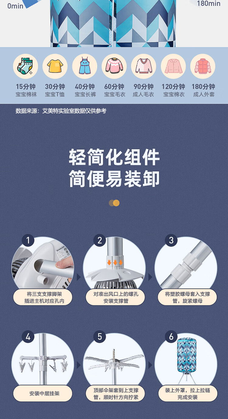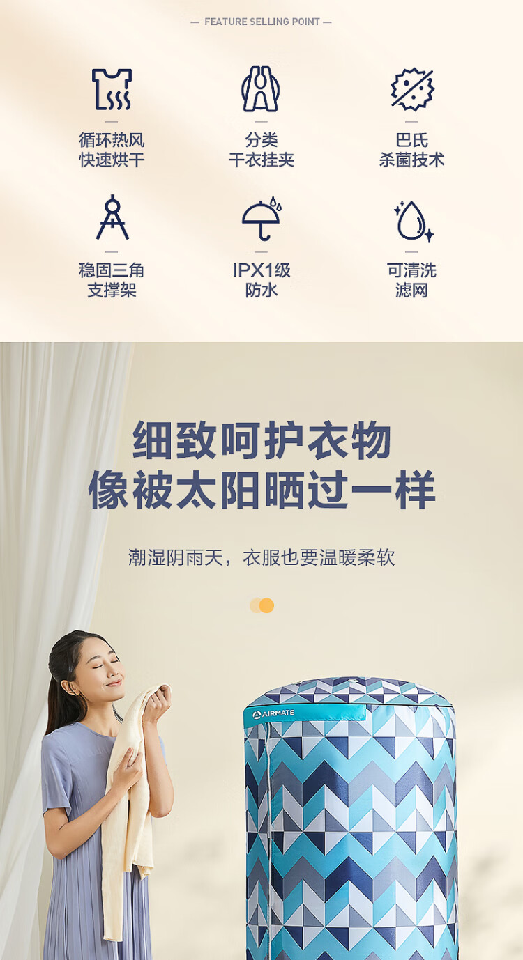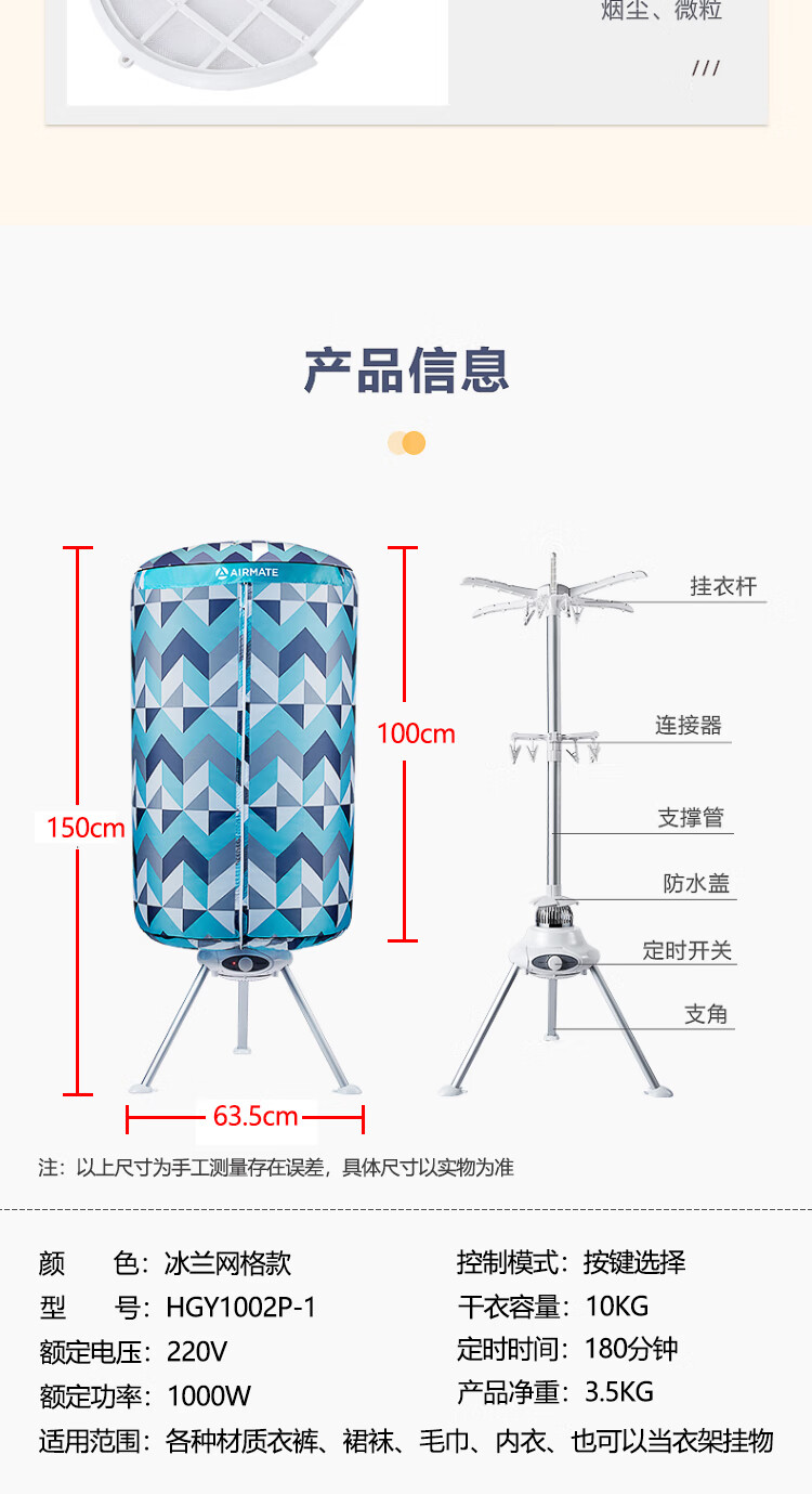 商品标题:艾美特(AIRMATE)HGY1002P-1家用折叠烘干机干衣机(单位:个)蓝色