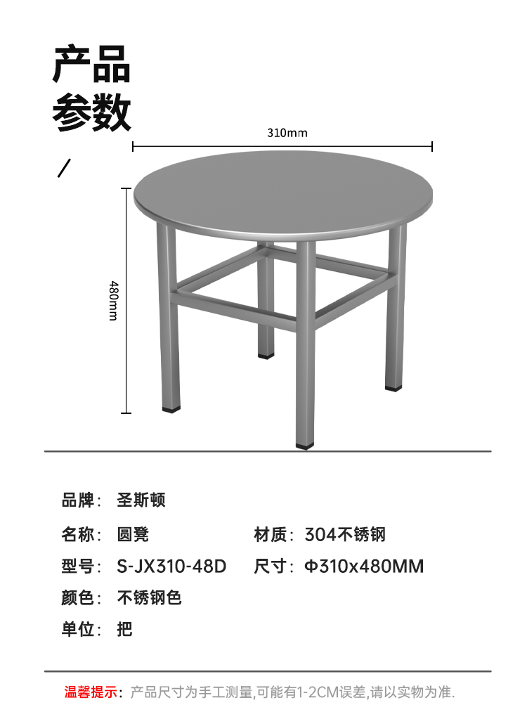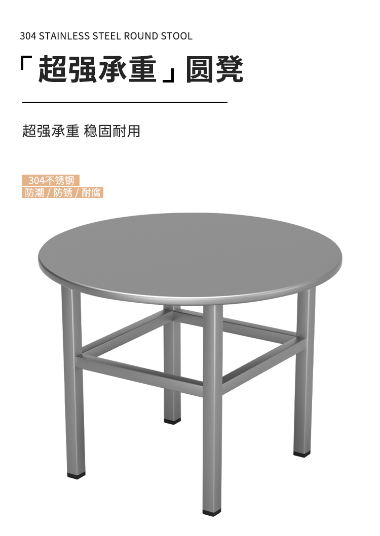 商品标题:圣斯顿圆凳 S-JX310-48D圆凳304凳子直径310x480mm(张)不锈钢色