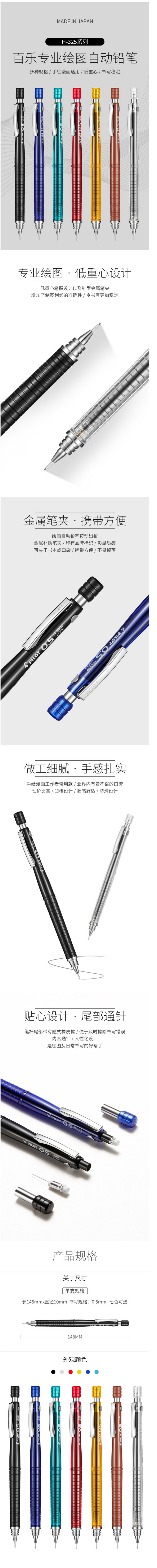 商品标题:百乐H-325红杆自动铅笔0.5mm12支/盒(支)