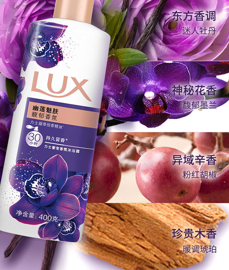 商品标题:力士400ml精油香氛沐浴乳幽莲魅肤(瓶)