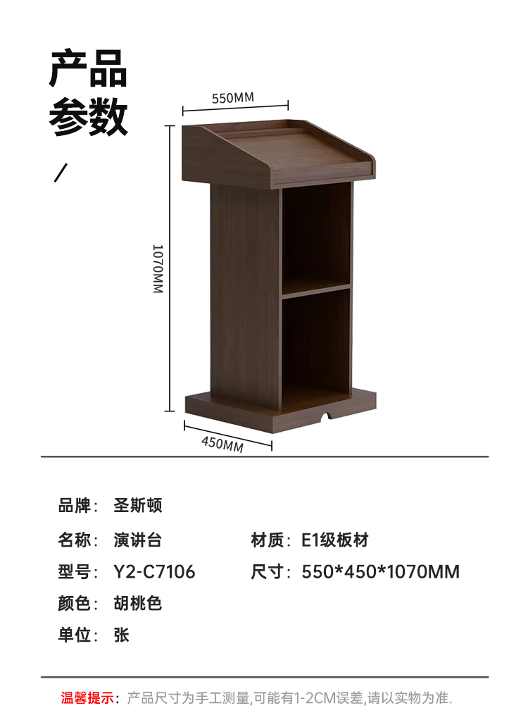 商品标题:圣斯顿Y2-C7106板式简约演讲台550*450*1070mm(张)胡桃色