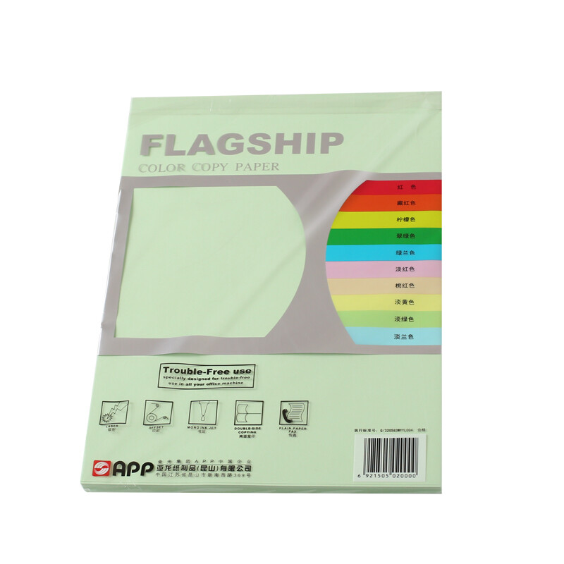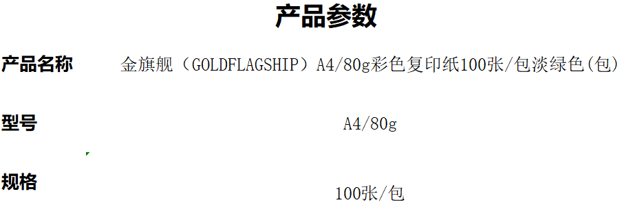 产品名称:金旗舰A4/80G复印纸浅绿色100张/包(包)