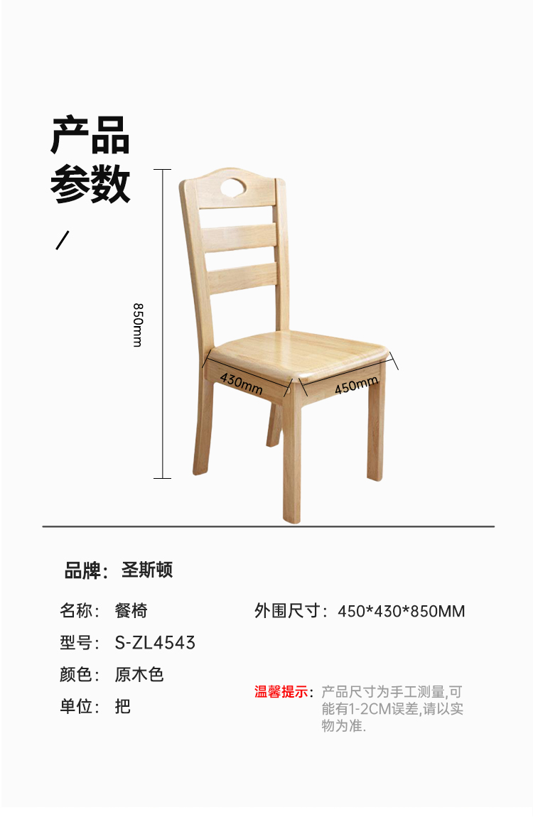 商品标题:圣斯顿S-ZL4543实木餐椅450*430*850mm(套)原木色