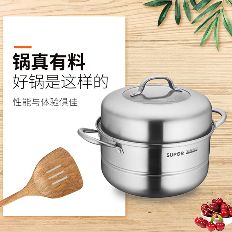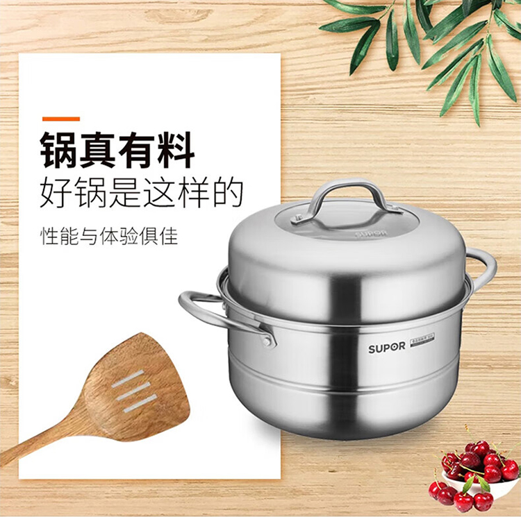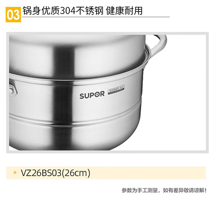 苏泊尔SUPOR 蒸锅VZ26BS03 多功能304不锈钢双层蒸汤锅26cm(单位:套)明火电磁通用