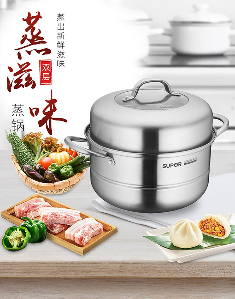 商品标题:苏泊尔(SUPOR)好帮手不锈钢双层蒸锅 26cm口径-VZ26BS03