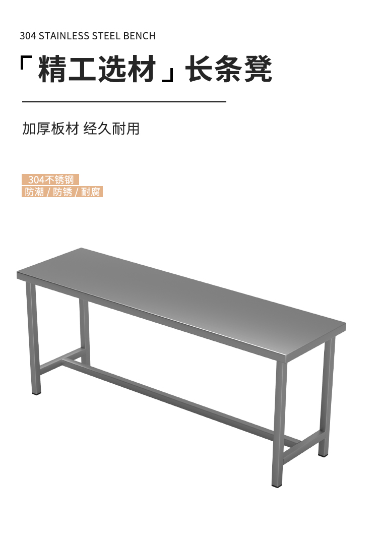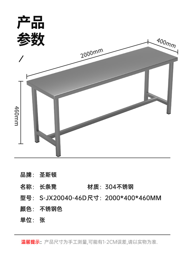 商品标题:圣斯顿S-JX20040-46D长凳304不锈钢更衣凳2000X400X460mm(张)不锈钢色