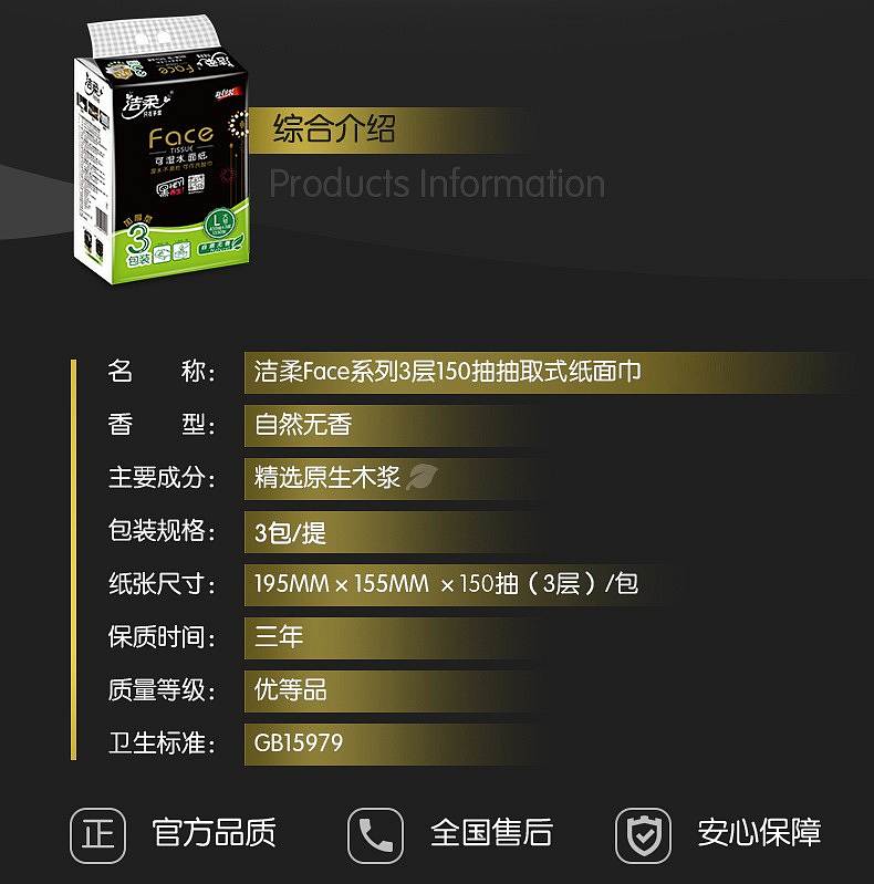 商品标题:洁柔BR060-03软抽195*155mm3层150抽3*16*1(箱)