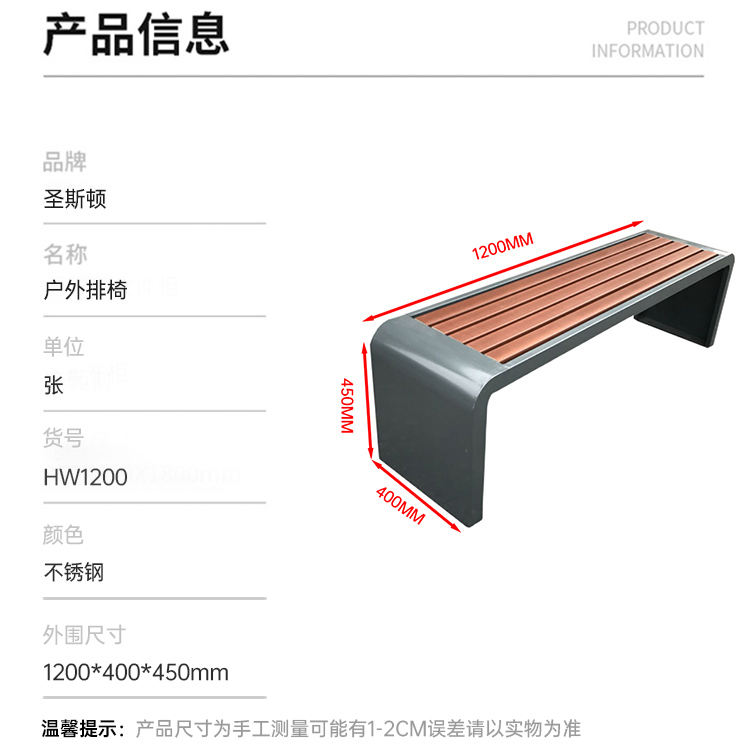 商品标题:圣斯顿HW1200户外排椅1200*400*450mm(张)不锈钢