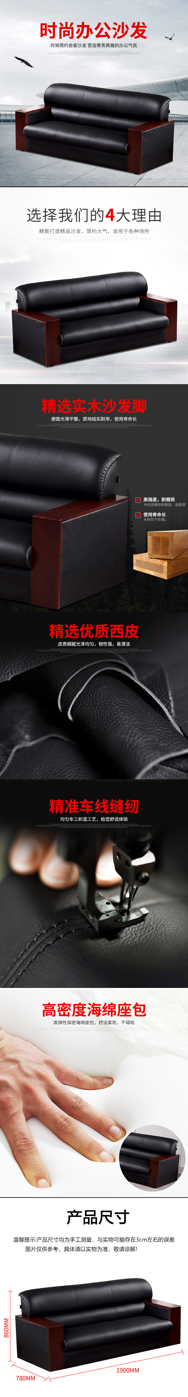 商品标题:齐初QC-DSF-01皮质沙发办公沙发办公室接待会客沙发 商务沙发不含茶几三人位黑色190*78*86cm(张)