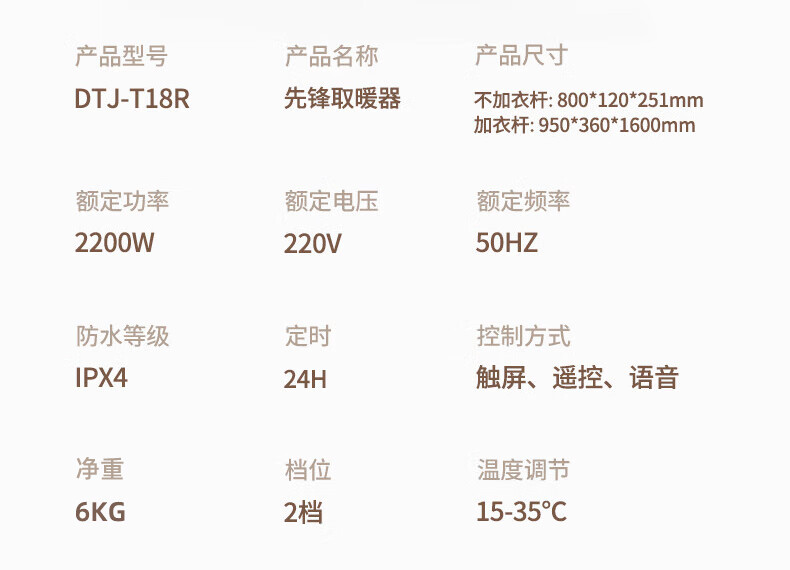 商品标题:先锋(SINGFUN)DTJ-T18R烘衣智能款取暖器(单位:台)米白色