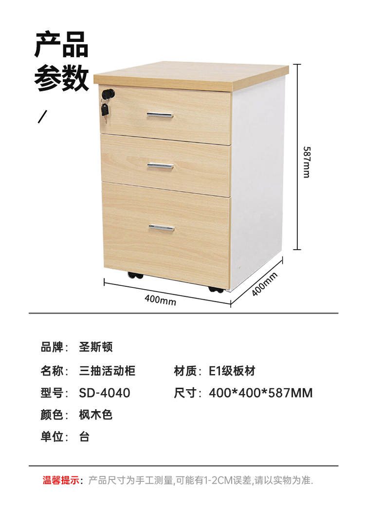 圣斯顿SD-4040三抽活动柜400*400*587mm(单位:台 )枫木色