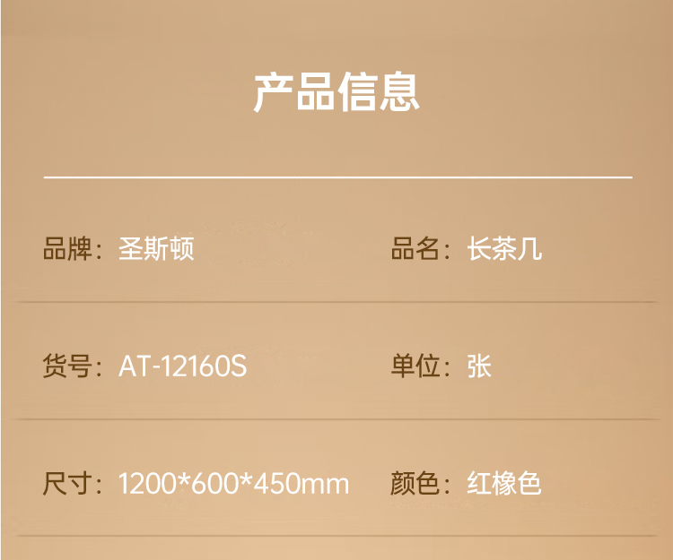 商品标题:圣斯顿AT-12160S板式长茶几1200*600*450mm(张)颜色:红橡色