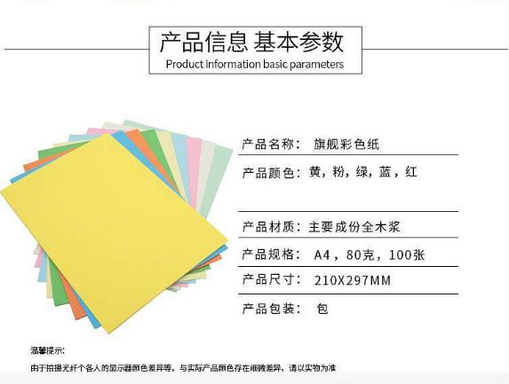 商品标题:旗舰彩色复印纸红色80g/A4/100张/包(包)