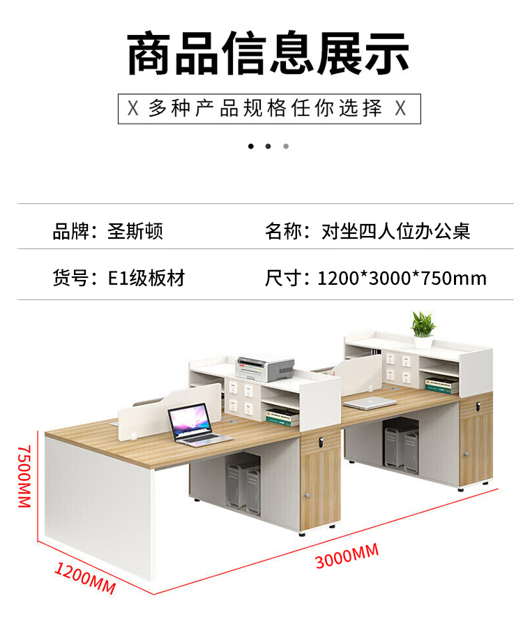 商品标题:圣斯顿S-Y11204Y对坐四人位办公桌1200*3000*750mm 颜色可选