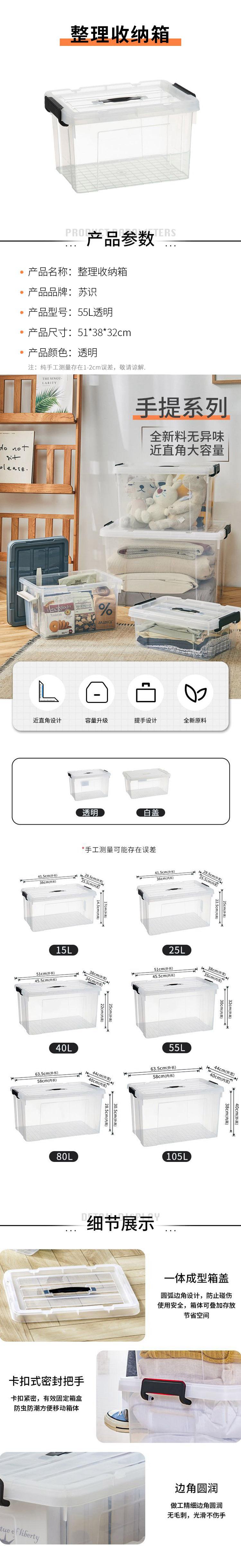 商品标题:苏识 55L 透明盖 防水防潮透明整理收纳箱 (计价单位:个) 透明