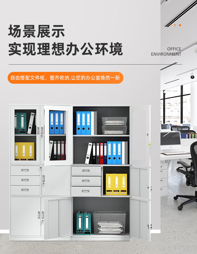 商品标题:圣斯顿SD0108-WT偏三斗文件柜整装1800*850*390mm(台)灰白