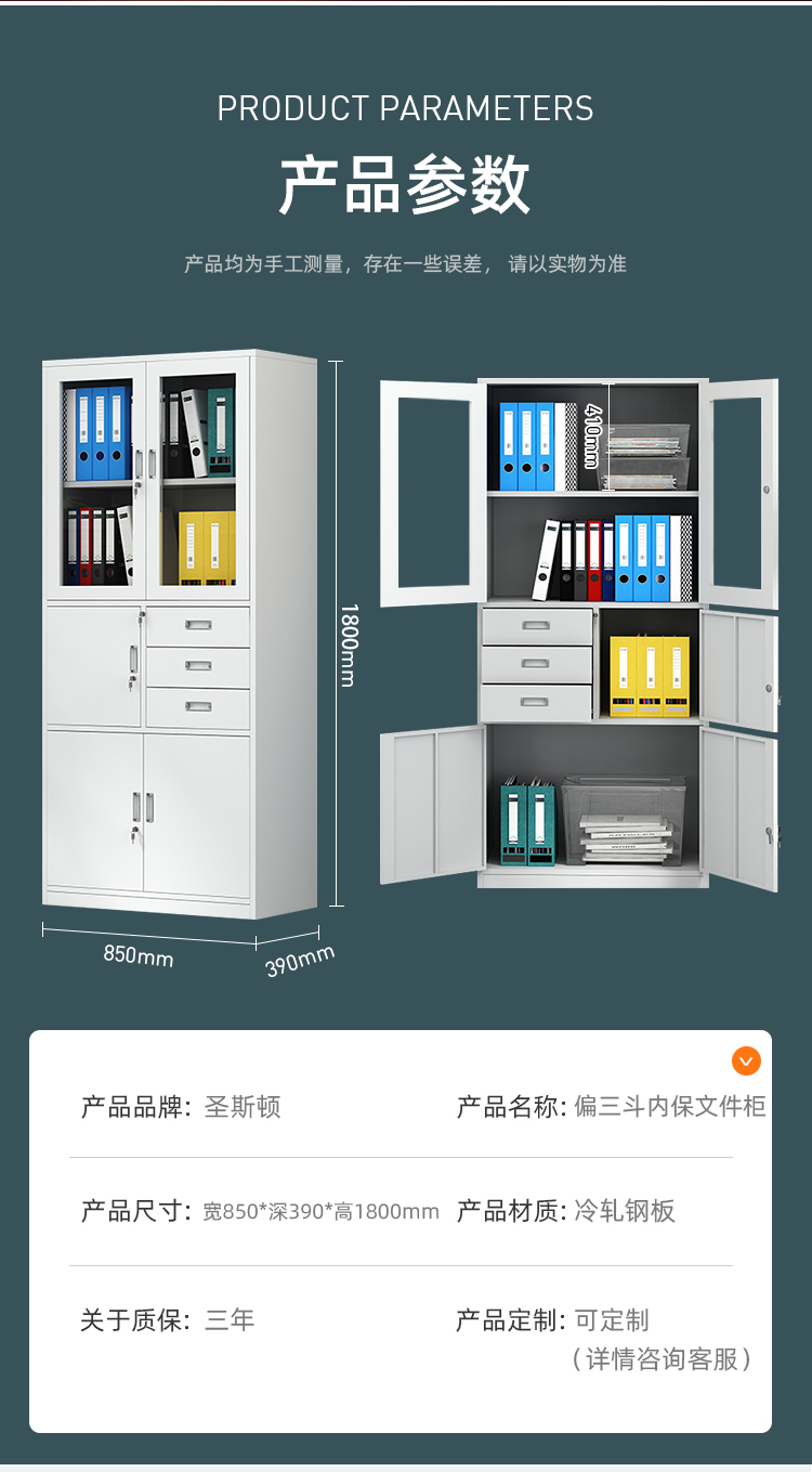 圣斯顿SD0108-WT偏三斗内保文件柜整装1800*850*390mm(单位:台)灰白
