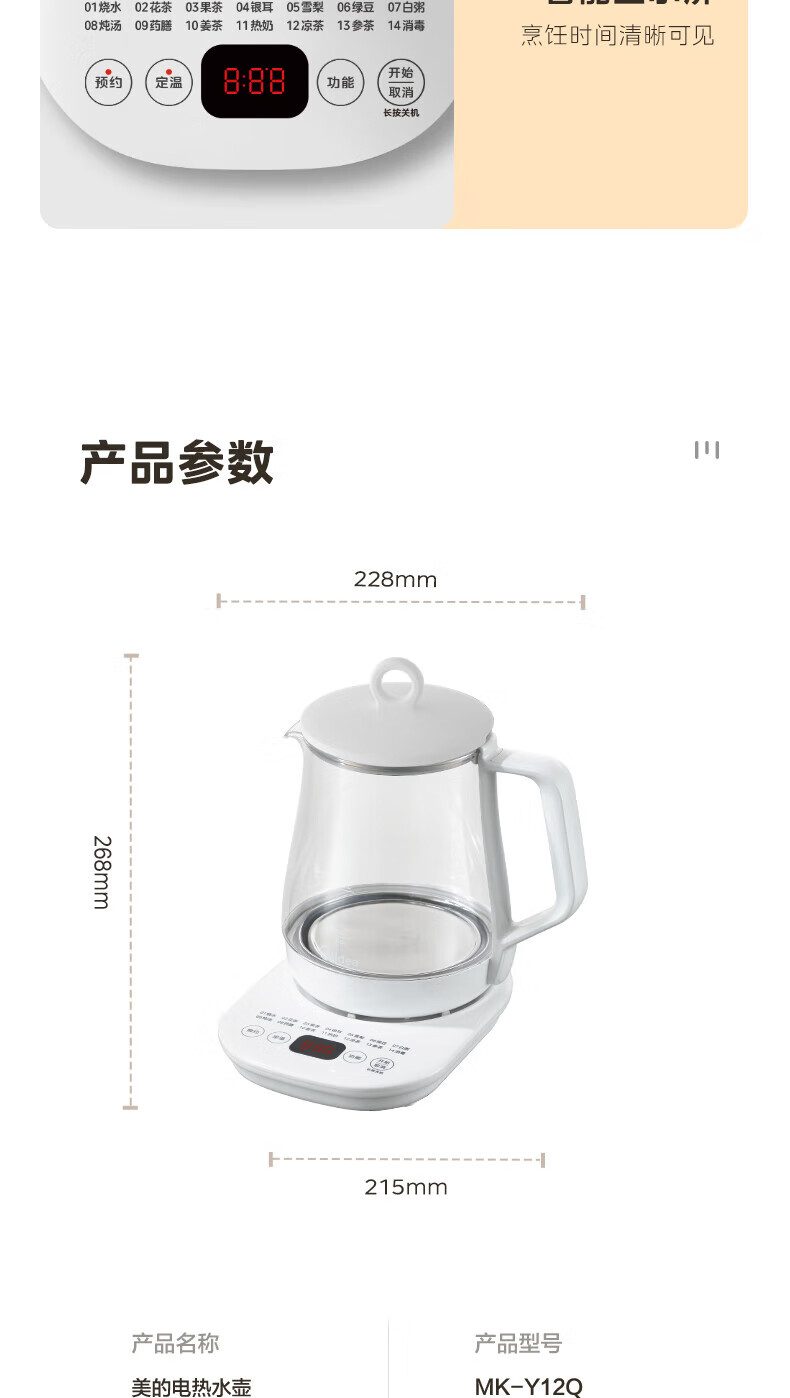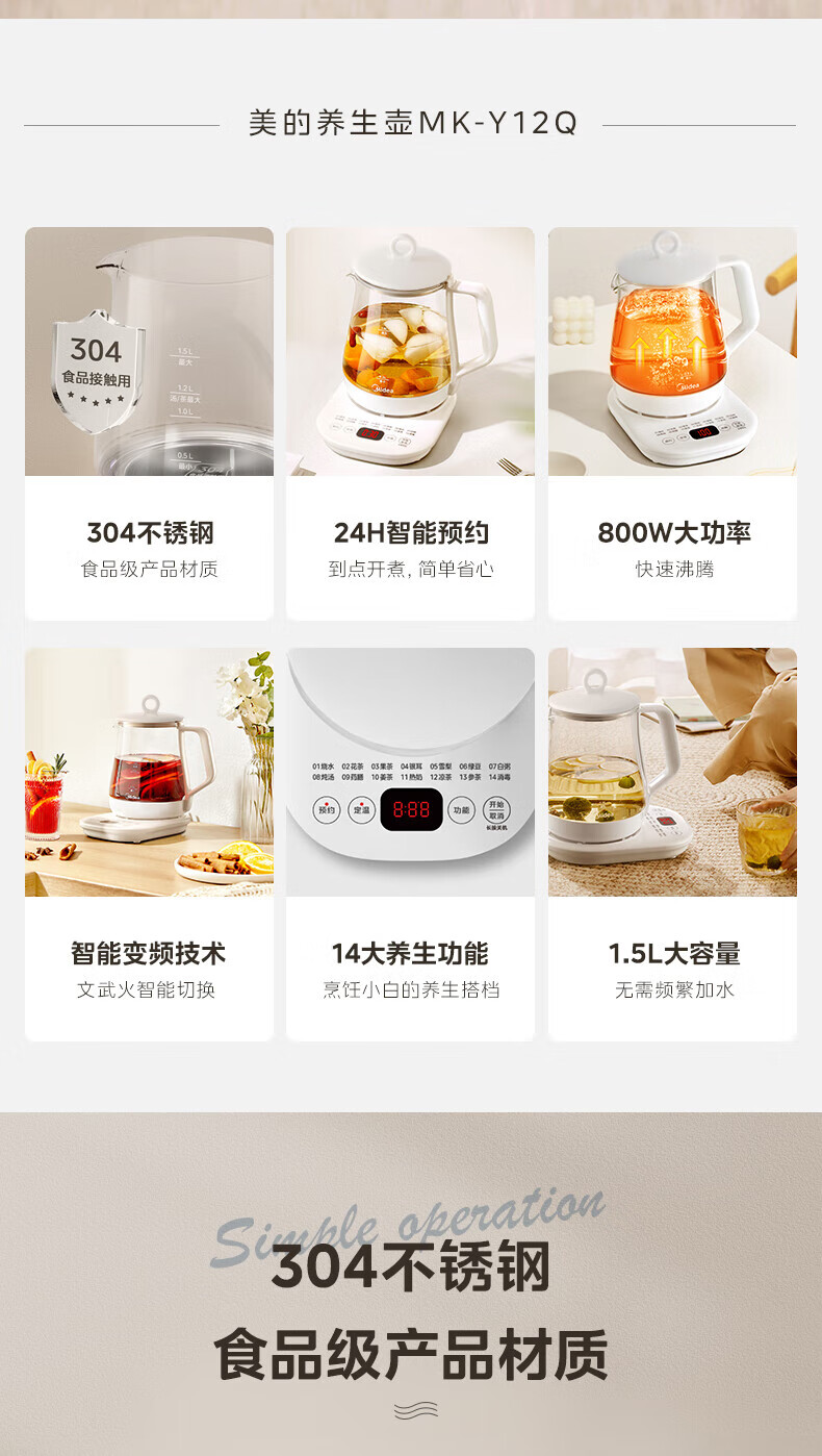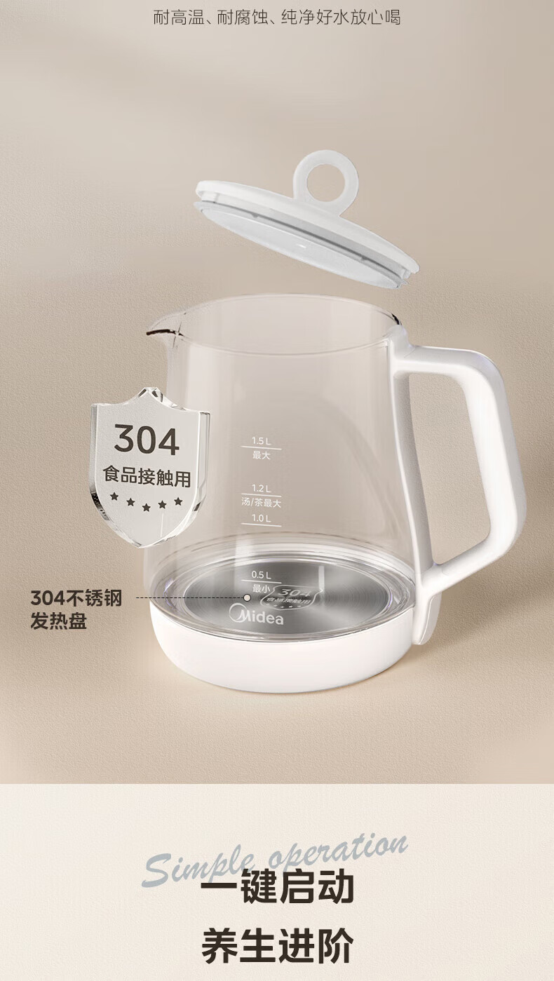 美的 MK-Y12Q 养生壶304不锈钢1.5L(台)